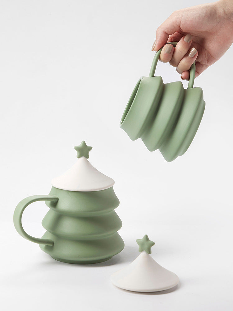 Creative Large Christmas Tree Ceramic Mug With Lid